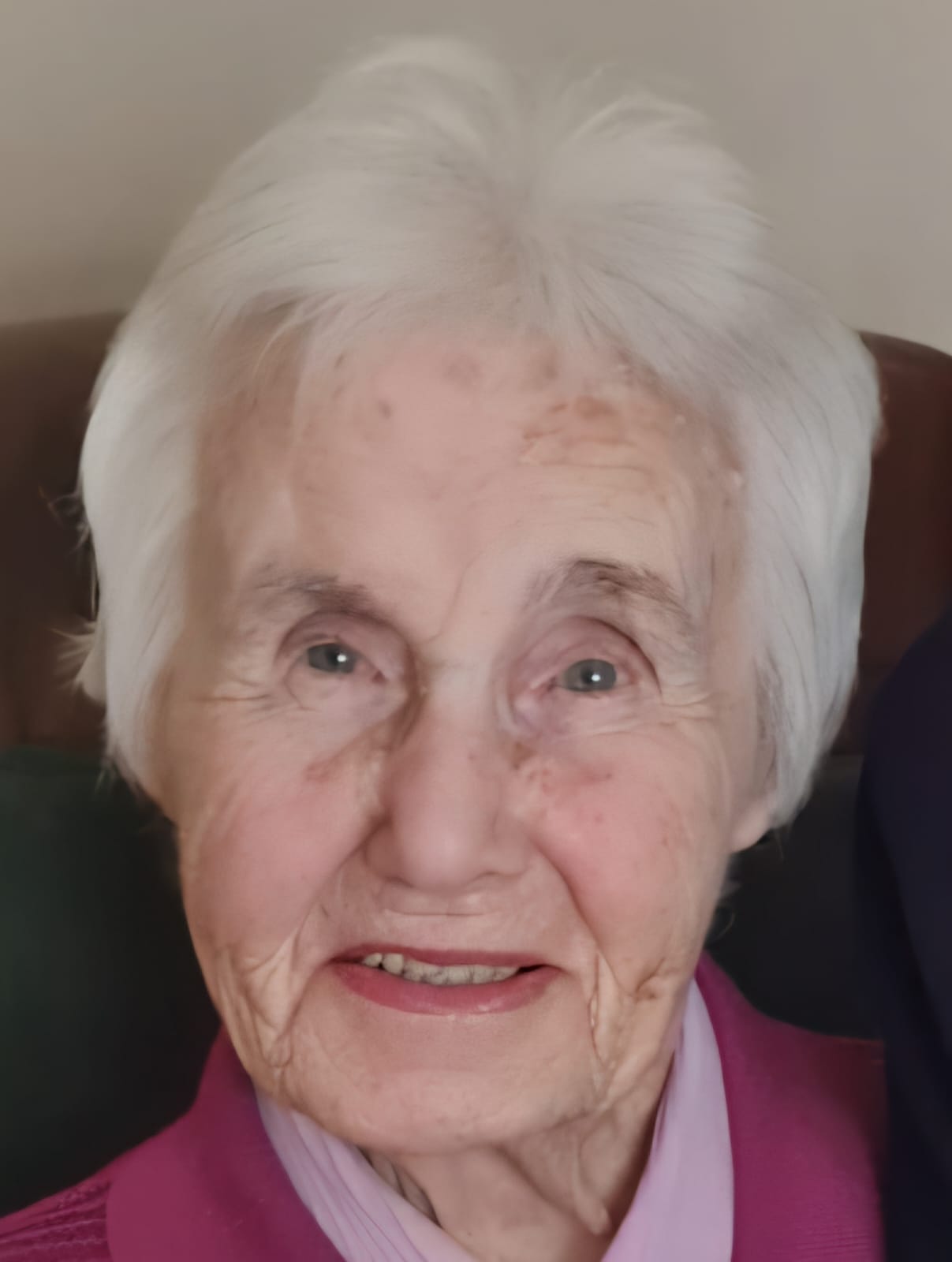 Angela, passed away peacefully in her 99th year, on Friday, January 24, 2025 at Merlin Park Hospital. Predeceased by her beloved husband Pádraig Ó hEidhin, her parents Aubrey and Elizabeth and by her siblings Fr. Liam (Columban Fathers), Jimmy, Ita, Josie and Johnny.