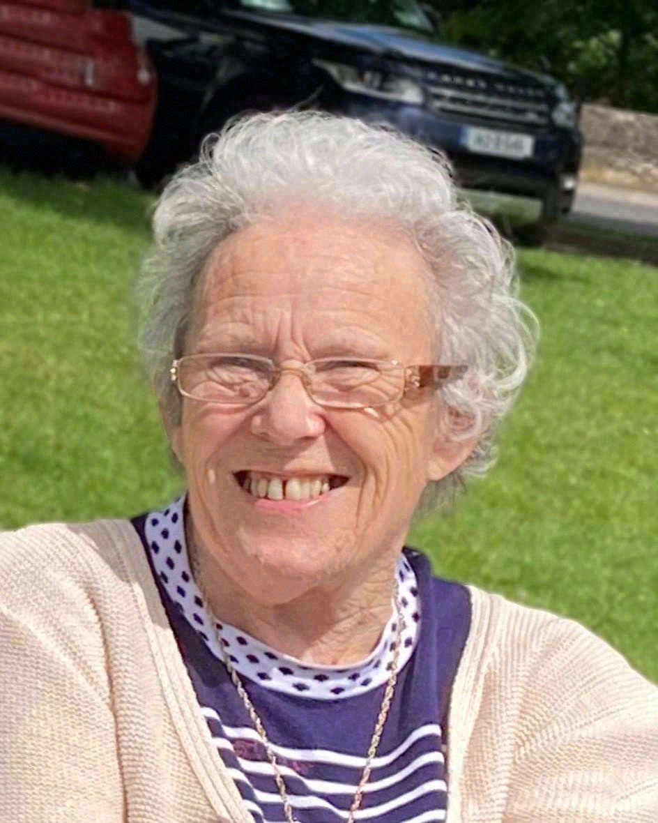 Sadly missed by her loving sons John, Matt and Finbar, sister Pearl, adored grandchildren Dan, Sam, Katie, Chloe, Aisling, Tara, Ella, Ben and Tom and great-grandson Rian, daughters-in-law Sue, Sheila and Lorraine, extended family and friends.