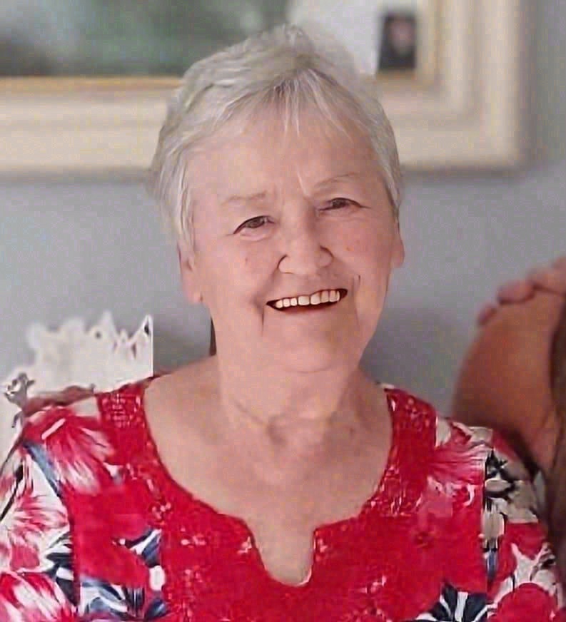 She will be sadly missed by her loving husband, sons, grandchildren, daughters-in-law Alison and Róisín, sisters, brothers-in-law Michael, Pete, Mick and Tom, nephews, nieces, relatives and friends.