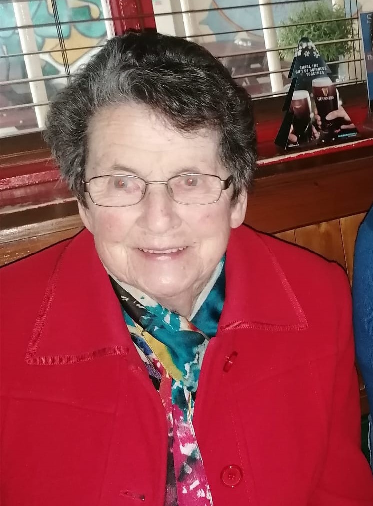 Breege Jordan (nee McGrath); Milltown, Ballymore, Co Westmeath, November 28th 2022, peacefully after a short illness, surrounded by her family, in the wonderful care of the staff at Midlands Regional Hospital, Mullingar. Predeceased by her husband William (Bill), infant son Damien, sisters Sr. Susan, Sr. Edith (Mena), Sr. Ambrose (Mary), brothers Fr. John, Joe and Michael.