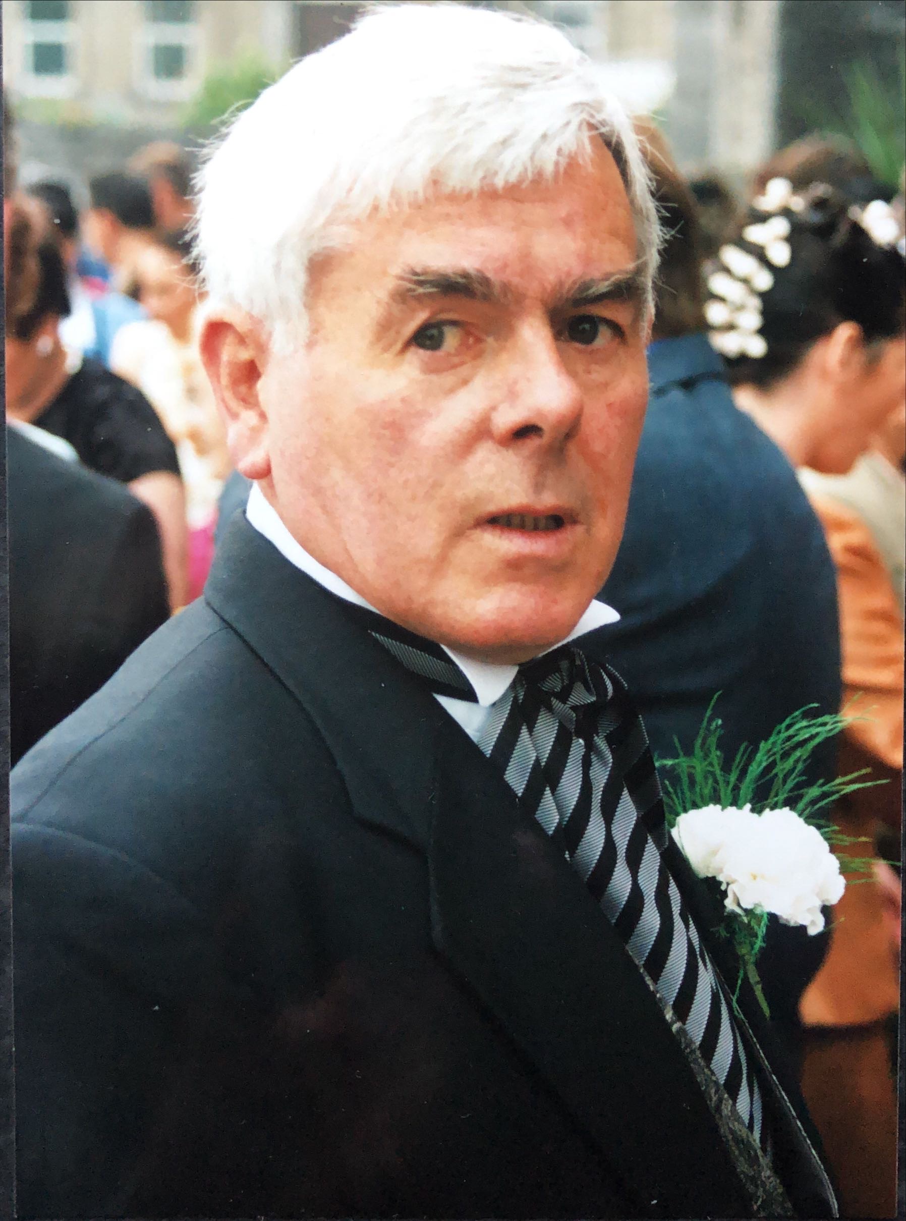 Deeply regretted by his loving wife Patricia (Pat), sons Liam, Brendan and Eoghan, daughter-in-law Pat and future daughter-in-law Laura, brothers Seán and Tony, sisters Mary and Noreen, brothers-in-law, sisters-in-law, nephews, nieces and a wide circle of friends.