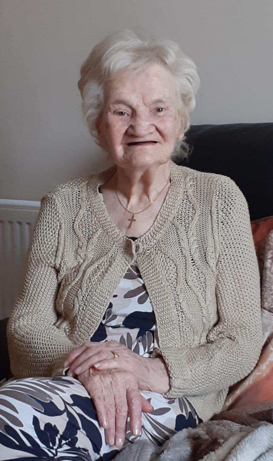 Predeceased by her parents Josephine and Peter, brothers Billy and Joe, sisters Mary, Marcella, Eileen and Annie, husband Nicky and children John and Theresa. Sadly missed by her loving son Derek, daughters Marian, Joan, Anne, Martina and Elaine, granddaughter Nicola who lived with Nanny, her 20 grandchildren, her 20 great-grandchildren, daughter-in-law Liz, sons-in-law Seán, Martin, Brian, Eamonn, Anne's partner Brian and Elaine's partner Brian, her many nieces, nephews, extended family and her many wonderful neighbours and friends in New Ross, Clongeen and further afield.