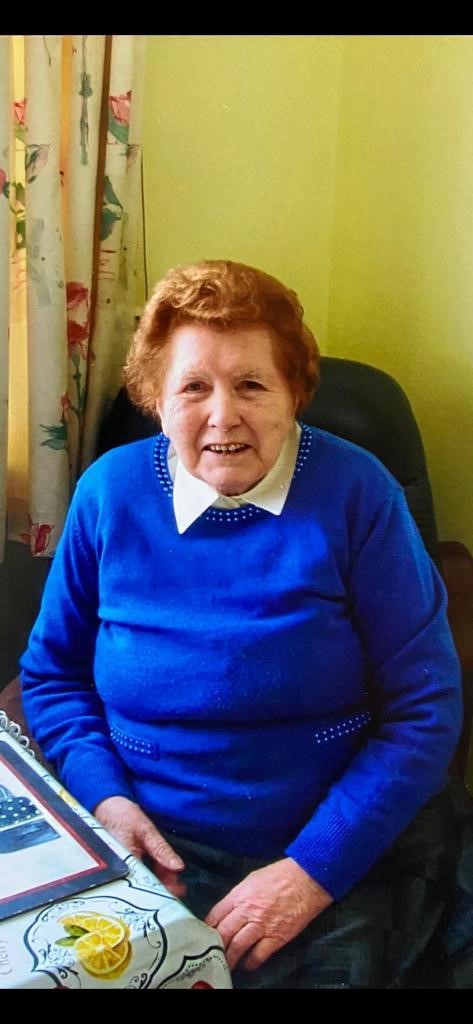 The death has taken place of Ellen Mary (Lena May) Relihan, late of Pluckanes, Donoughmore and Church View, Charleville who passed away peacefully on July 19th 2021, in the loving care of the staff of Aperee Living Churchtown, beloved wife of the late Denis dear mother of Nora, Peggie, Mary, Ann, Ted and the late Eileen and Pat, mother-in-law of the late Tricia and Denis and sister of the late Madgie (Forde), Kathleen (Buckley) and Michael Higgins. Sadly missed by her loving family, sons-in-law John, Tom and Michael, daughter-in-law Anne, grandchildren, great-grandchildren, nephews, nieces, relatives and friends.