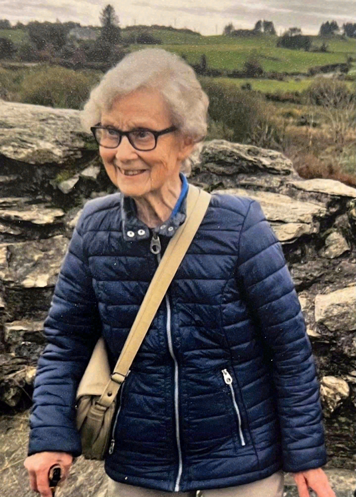 Very sadly missed by her daughter, son, son-in-law Kenneth, granddaughter Olivia, sisters Vera and Hilda, nieces, nephews, sister-in-law Violet, relatives, good neighbours and friends.