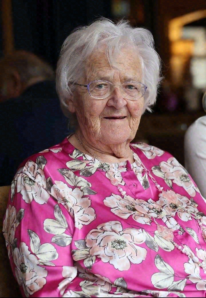 Cherished mother of Fergal, Ronan, Jim, Gerard, and Barbara and their spouses, Denise, Lucille, Vivienne, Aideen and John. Adored Nanny of Helena, Gill, Rob, David, Rachael, Lisa, Laura, Daragh, Éabha Maria, James, Aaron and Dylan, and Great-Granny of Adam and Lily. Sadly missed by her sister, Sheila, her many friends and her special German Shepherd pal, Ebra.