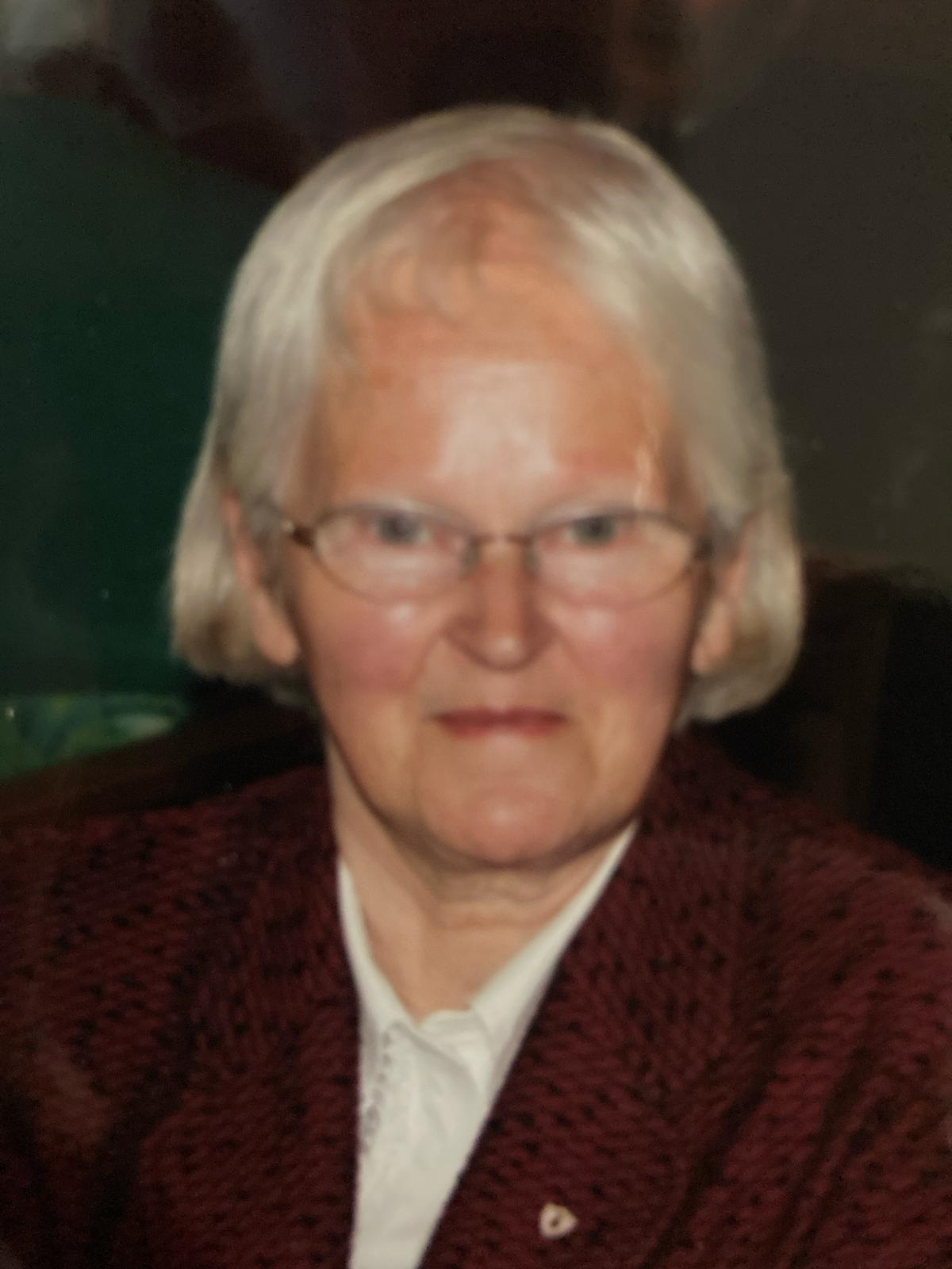 Very sadly missed by her heartbroken family, sons-in-law Brendan and Tony, daughters-in-law Siobhán and Martina, sisters-in-law Breda Hackett and Nora, brother-in-law Sean and the late Kevin, nieces, nephews, relatives, many friends and neighbours.