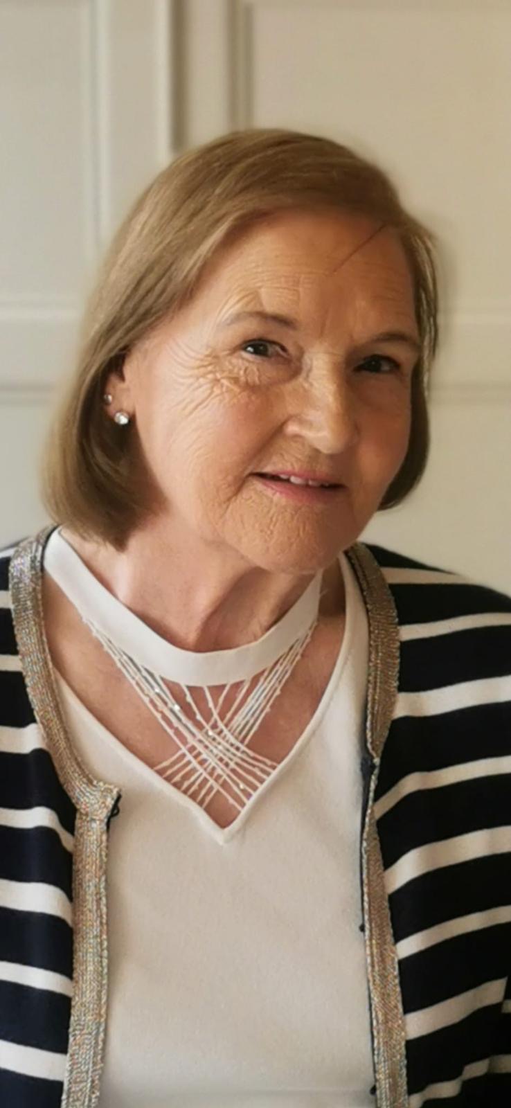 She will be sadly missed by her devoted husband Michael, her daughters Michelle, Fiona and Alma, her sons Declan and Nigel, her much loved grandchildren Emma, Darragh, Leah, Sophie, Faye, Zac, Ryan, Zarah, Holly, Ben and Max, her sons-in-law Michael Cleere, Ger Campbell and Mark Everitt, her daughters-in-law Martina and Louise, her sisters Maureen and Sr. Kathleen, her brother Paddy, sisters-in-law, brothers-in-law, nieces, nephews, neighbours and friends.