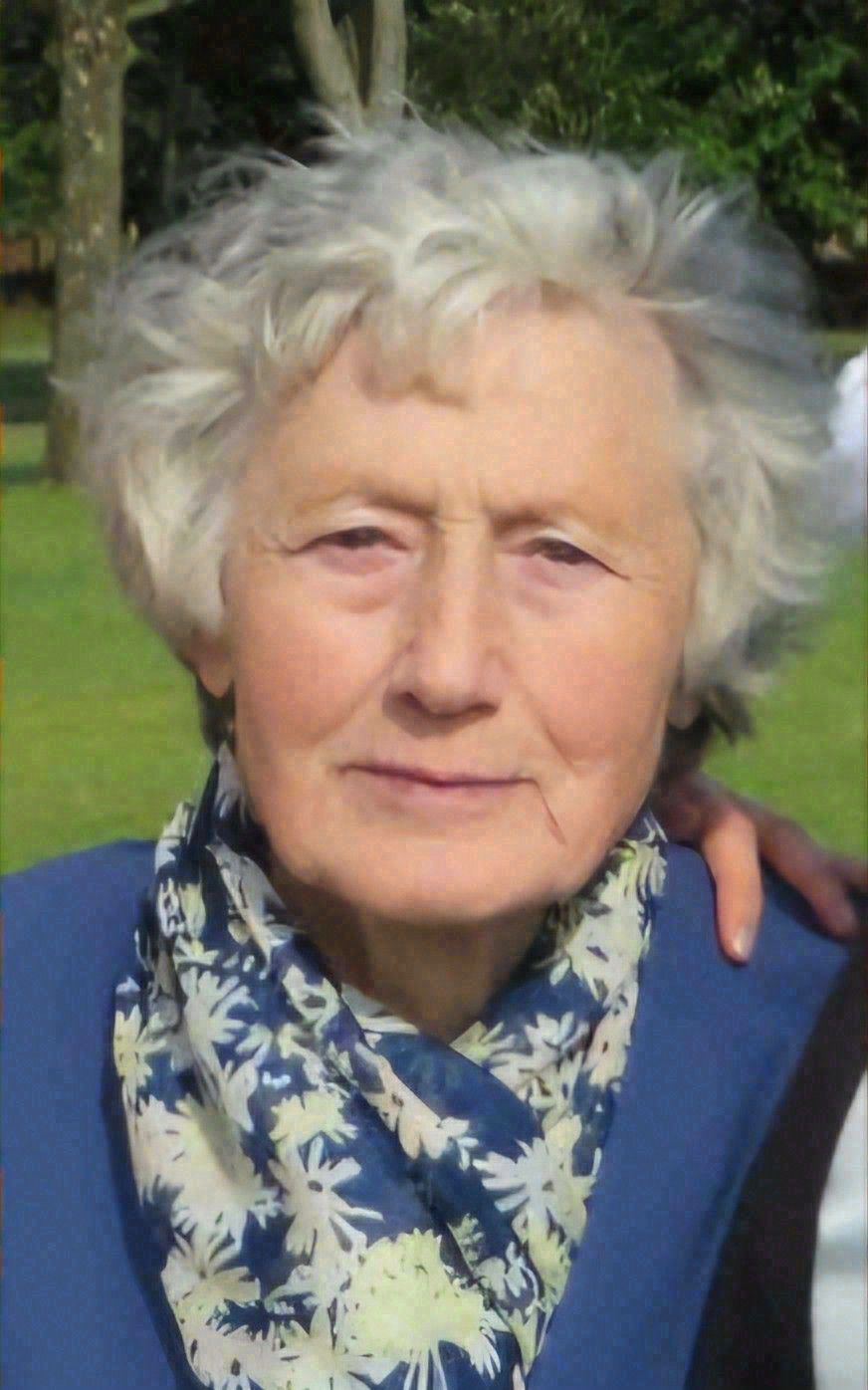 Sadly missed by her children Danny, Desmond and Claire, daughters-in-law Karen and Helena, son-in-law Steve, her adored grandchildren Hannah, Sarah, Seán and Paul, great-grandchildren Harry, Theo, Arthur, Trefor and Julia, sister Eileen, nephews, nieces, relatives, neighbours and many friends.