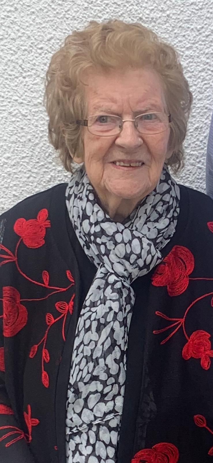Mai Cooney, nee Cusack, 31st January 2023 peacefully in her 97th year, at her residence Greagheittia, Tunnyduff, Bailieborough, Co.Cavan. Surrounded by her heart broken family. Predeceased by her husband Kevin, and son John, brother Packie and daughter-in-law Bernie. Sadly missed by her family ,sons P.J., Kevin, Brendan & Raymond, sister-in-law Teresa, daughters-in-law, Ann, Rose, Blaithín and Anne, her 17 gandchildren, 4 great-grandchildren, nieces, nephews, cousins, neighbours, relatives, and friends.
