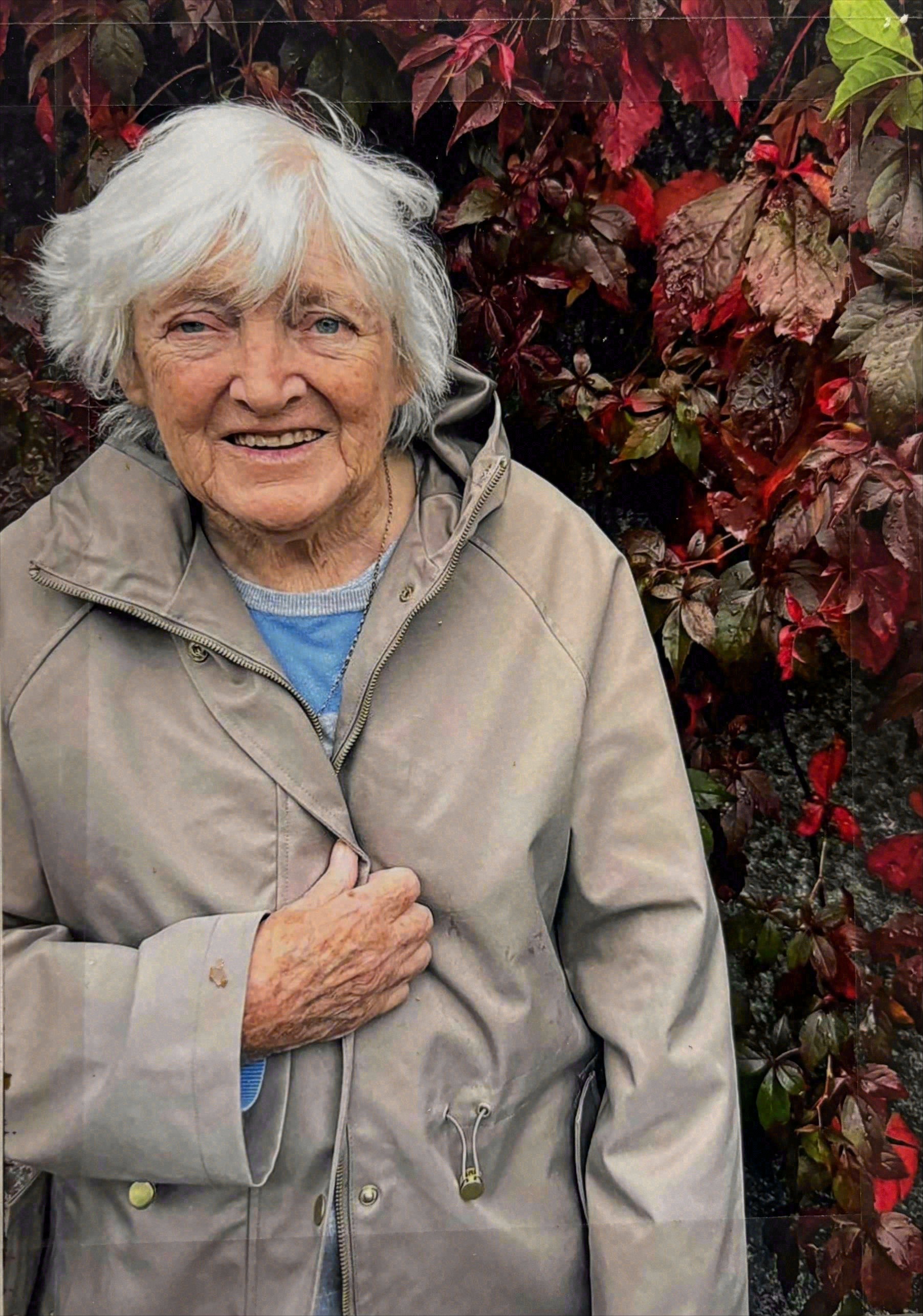 Sadly missed by her loving family, sister Sheila, son-in-law Cormac, daughters-in-law Margaret, Michelle and Margaret, Tom's partner Tia, grandchildren, great-grandchildren, extended family, relatives, neighbours and friends.