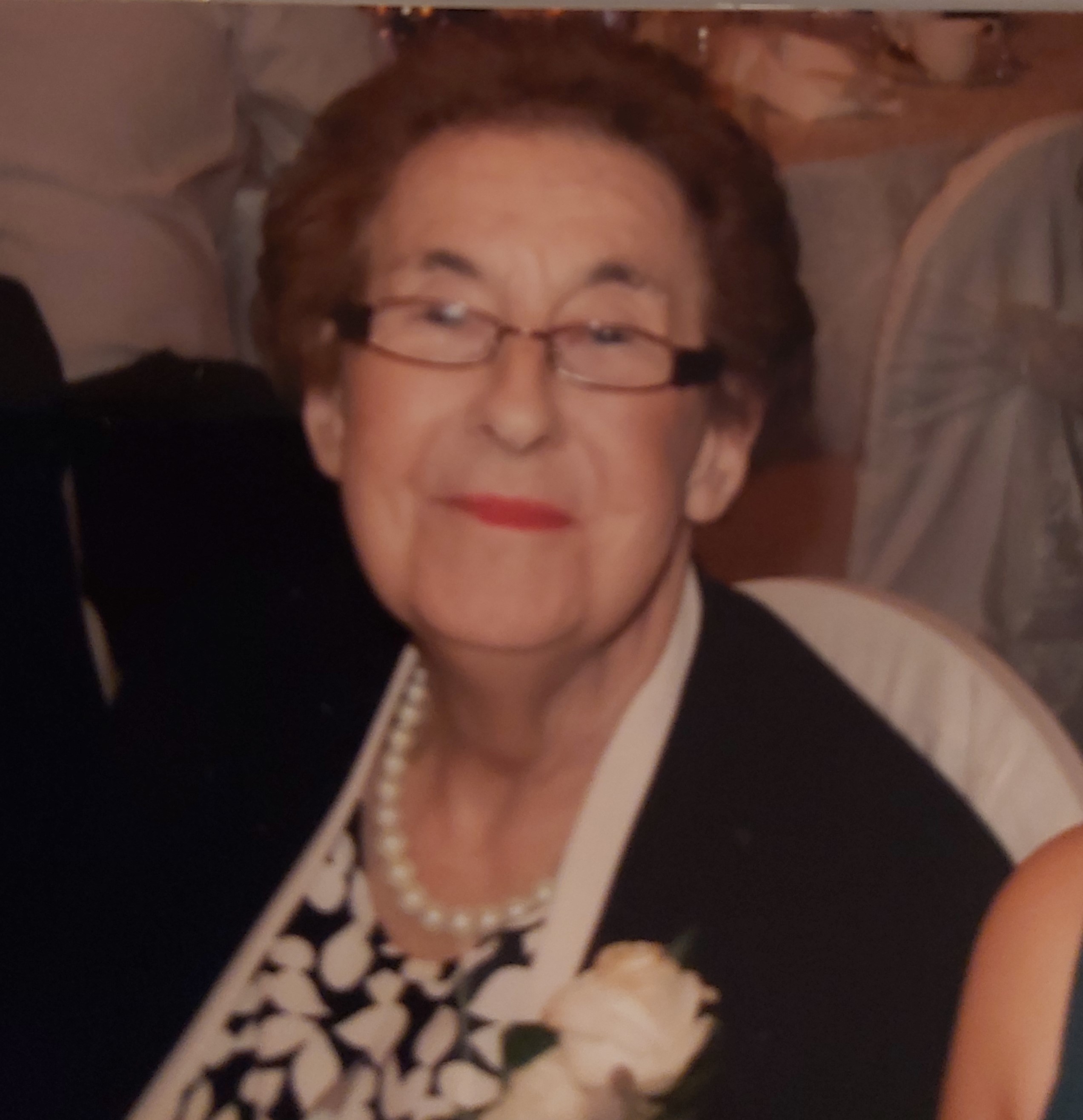 Sadly missed by her loving family, son-in-law Jack, daughter-in-law Eileen, grandchildren, great-grandchildren, sister-in-law Peg, her beloved cousin Peggy Desmond, relatives, neighbours and a wide circle of friends.