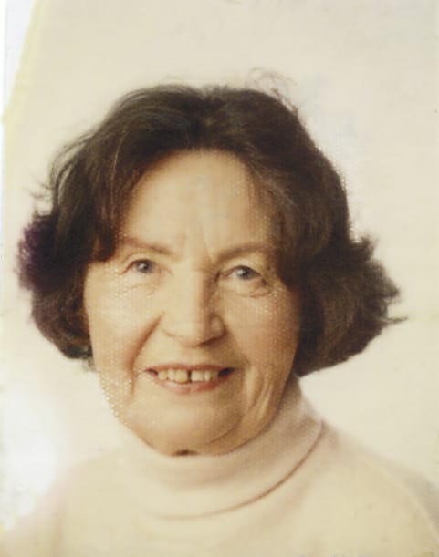 Peacefully, in the wonderful care of Le Cheile Ward, St. Vincent's Hospital, Athy. Sadly missed by her loving husband John, sons Fergus, Daniel and Ronan, daughter Sinead, her 11 grandchildren, daughters-in-law Orla, Jennie and Petra, sisters Josie, Tessie and Brenda, brothers Paddy and John (R.I.P.), sister-in-law Nancy, brother in law Liam, nephews, nieces, relatives, neighbours and friends.