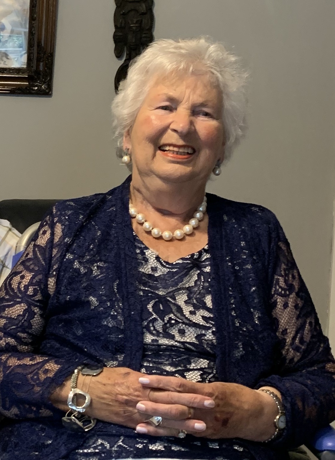 Deeply missed by her loving husband Matt; sons Bryan, Conor, Neil, and Eoin, daughters in-law Joan, Aileen, Clodagh, and Karen; sisters Una, Tess, and Phil; brothers in-law Michael and Pat; grandchildren Caitriona, Éilis, and Ellie; Aoife, Donal, Dearbhla, and Cliodhna; Niamh, Aimée, Lara, and Rowan; Emily, Tommy, and Ógie; great-grandchild Lyra; nephews, nieces, and her wide circle of friends.
