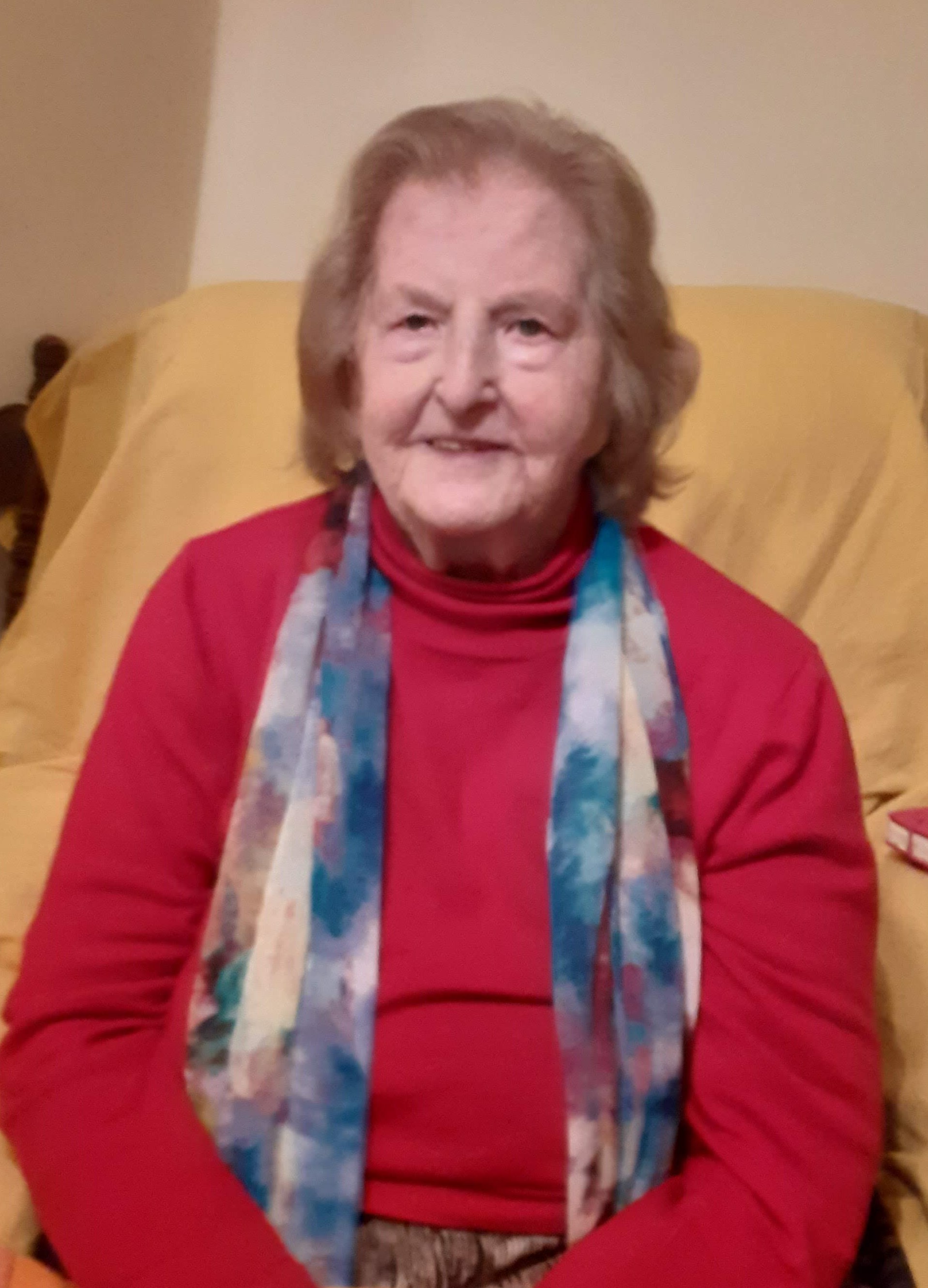 Sadly missed by her loving family, son-in-law Gearóid, daughters-in-law Gaye (née Redmond), Gaye (née O'Sullivan) and Debbie, grandchildren Julie, Elma, Lorna, Heather, Rose, Tess and Michael, great-grandchildren Eoin, Ella, Grace, Lily, Daniel, Charlie and Fiadh, nieces, nephews, brother-in-law, George, relatives and friends.