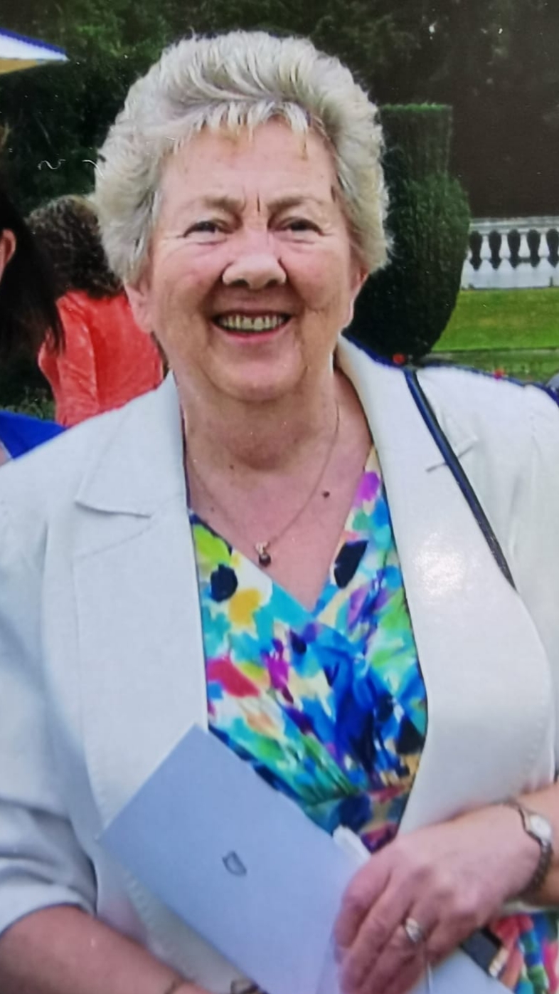 Beloved wife of Richard and mother of Liam, Thomas and Barry and sister of the recently deceased Sr Sarah Pius. Sadly missed by her loving family, daughters in law Liz and Bríd, brother Daniel, grandchildren Sionnach and Cara, brothers in law, sisters in law, cousins, nephews, nieces, extended family and many friends.