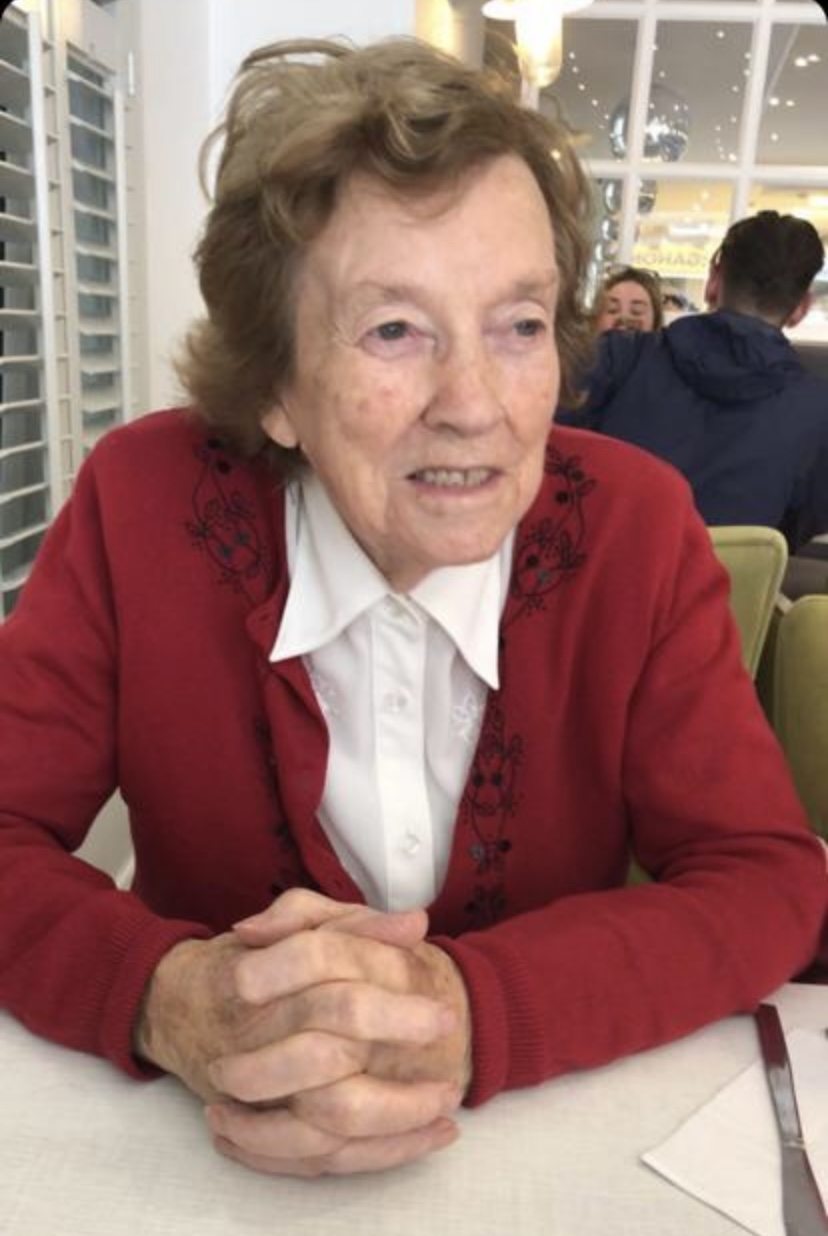 Peacefully, in her 97th year, in the care of her loving family, at home. Predeceased by her beloved husband Pete, parents Henry and Mary Kate, brothers John and Peadar and sisters Catherine (McCarthy), Teasie (McCann), Alice (Rooney) and Vera (McDermott). She will be sadly missed by her sorrowing sons and daughters James, Róisín, Carmel, Peter, Seán and Teresa, sons-in-law John and Seamus, daughters-in-law Lorraine and Kanchana, grandchildren, great-grandchildren, sister Claire (Moore, Ferbane, Co. Offaly), brother-in-law Michael (Moore) and sister-in-law Mary (Murphy), nephews, nieces, relatives, neighbours and friends.