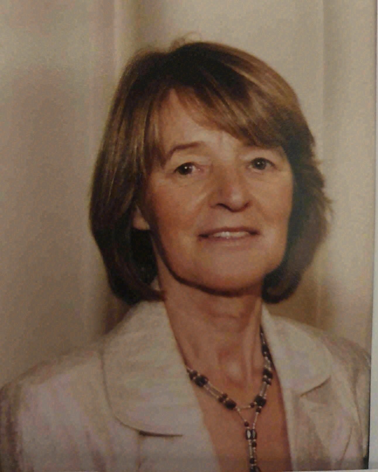Sadly missed by her loving sons, brothers, sisters, son-in-law Fintan, daughter-in-law Lisa, grandchildren Kevin, John, Claire, Patrick and Anne, great-grandchildren Ollie and Odhran, brothers-in-law, sisters-in-law, nephews, nieces, relatives and friends.