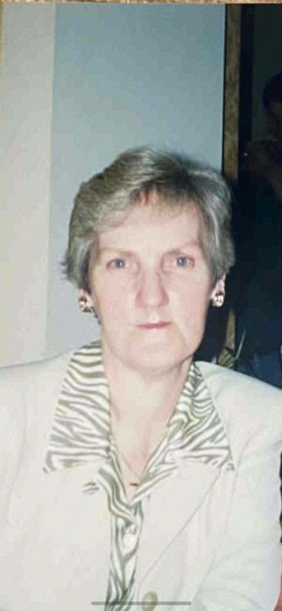 Deeply regretted and sadly missed by her loving family, her children Sandra (Philip), Martina and Barney (Maria), her cherished grandchildren Ben, Rebecca, Niamh and Emma, sisters-in-law, brothers-in-law, nieces, nephews, relatives, neighbours and a large circle of friends.