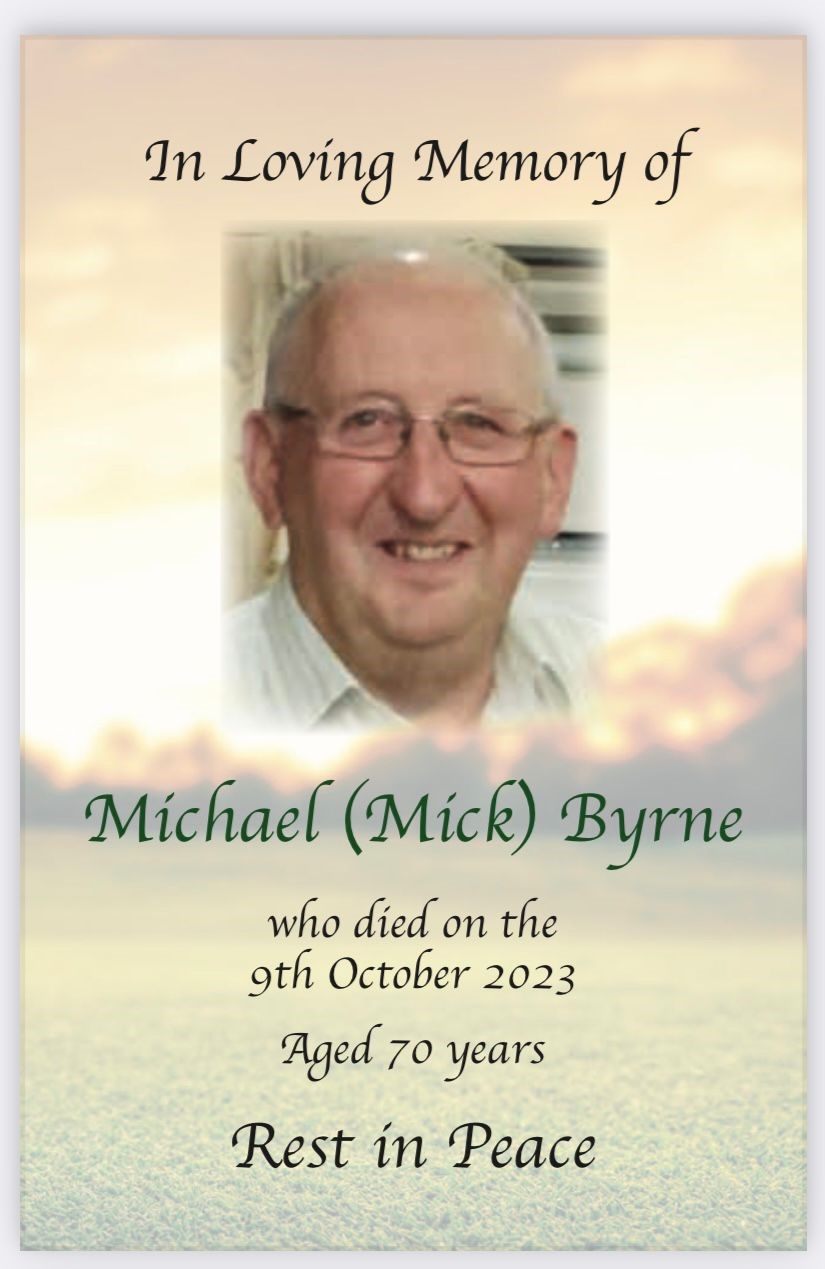 The family of the late Mick Byrne, Ballacolla, Co Laois, wish to express our sincere and heartfelt thanks to all who offered their support after Mick’s unexpected passing.
